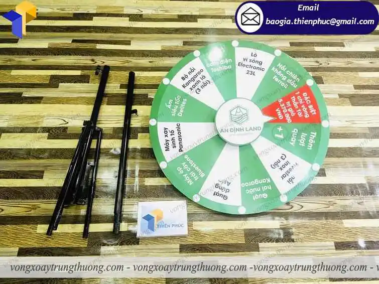 Bởi những lợi ích trên Vòng quay chân xếp trúng trưởng sẽ là công cụ tuyệt vời thu hút nhiều khách hàng quan tâm đến sản phẩm. Chính vì thế các doanh nghiệp lớn, nhỏ hay cá nhân nếu muốn hấp dẫn nhiều khách hàng thì cần phải mua ngay một vòng quay trúng thưởng để thực hiện quảng bá marketing một cách tốt nhất. Đặc biệt, vòng quay thân trụ trúng trưởng Thiên Phúc được thiết kế hình dáng,mẫu mã,màu sắc phong phú, được làm bằng sắt không gỉ sét, với chân xếp chắc chắn,... Đặc biệt vòng quay trúng thưởng Thiên Phúc là có thể tháo lắp cơ động, gọn gàng dễ di chuyển.