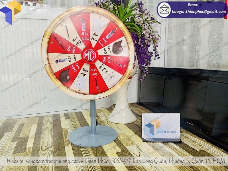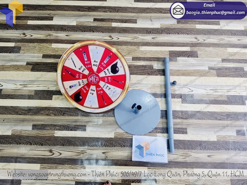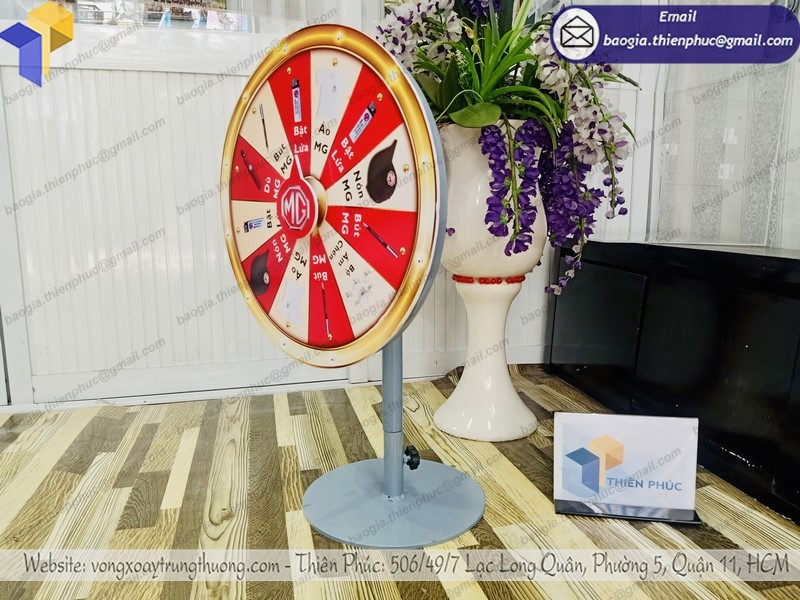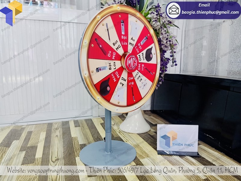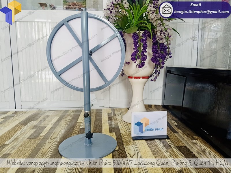 - Thân vòng quay trúng thưởng để bàn sử dụng khung sắt chắc chắn.