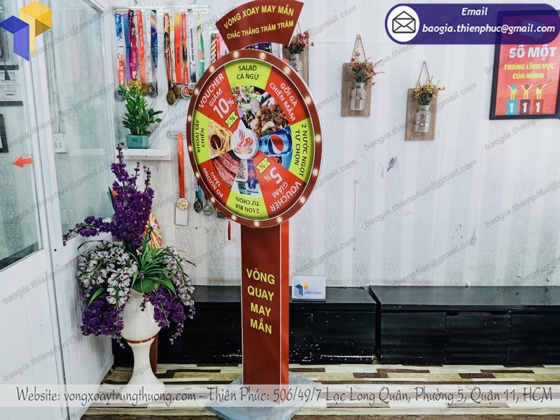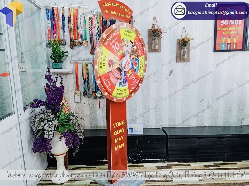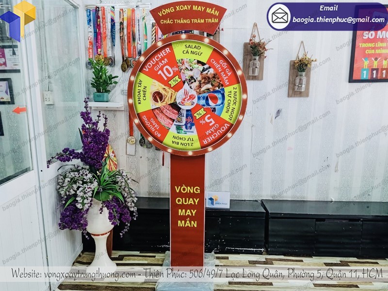 Sở hữu đội ngũ nhân viên, thiết kế chuyên nghiệp, tay nghề cao, giàu kinh nghiệm. Đến với chúng tôi, khách hàng sẽ được tư vấn tận tình, chi tiết để lựa chọn màu sắc, kích thước, chất liệu cho đến hình dáng vòng quay may mắn giá rẻ sao cho phù hợp với phong thuỷ và thực tế doanh nghiệp.