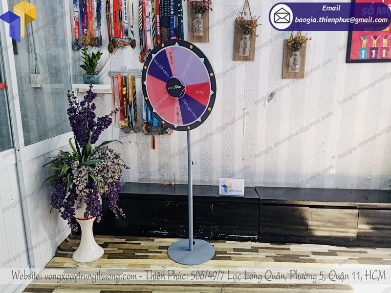 Thiên Phúc ngoài dịch vụ in ấn sản xuất vòng quay may mắn thì còn sản xuất standee, thùng phiếu, xe đẩy bán hàng, xe đạp, kiot,… Các ấn phẩm in nhà Thiên Phúc lại cho quý khách những sản phẩm và chất lượng phục vụ như ý.