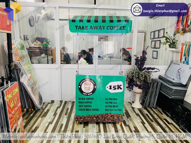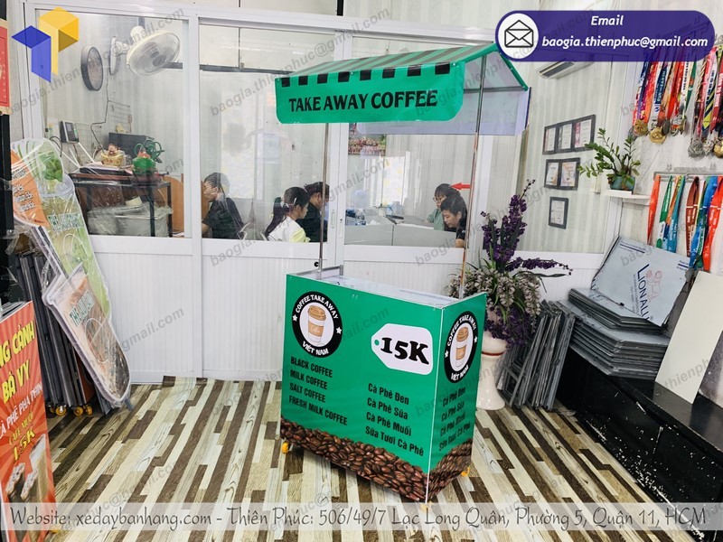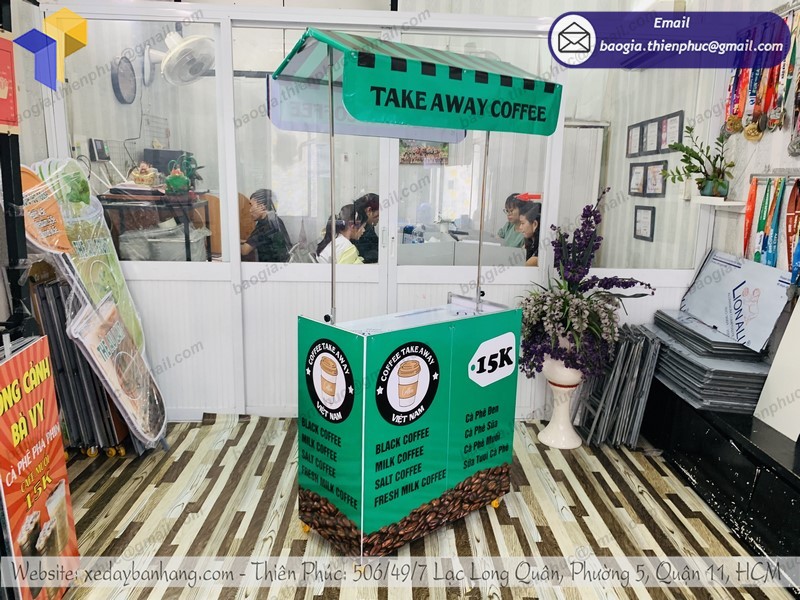 Quý khách hàng có thể yên tâm khi chọn mua các dòng xe café take away tại đây. Thiên Phúc có xưởng sản xuất trực tiếp không qua trung gian nên giá thành tốt hơn rất nhiều so với thị trường. Bên cạnh đó khách hàng cũng dễ dàng kiểm định các khâu sản xuất sản phẩm. Đối với giá thành các sản phẩm xe bán cà phê mang đi sẽ giao động từ 900.000 VNĐ – 20.000.000 VNĐ tùy từng chức năng và kiểu dáng người mua xe muốn thiết kế.