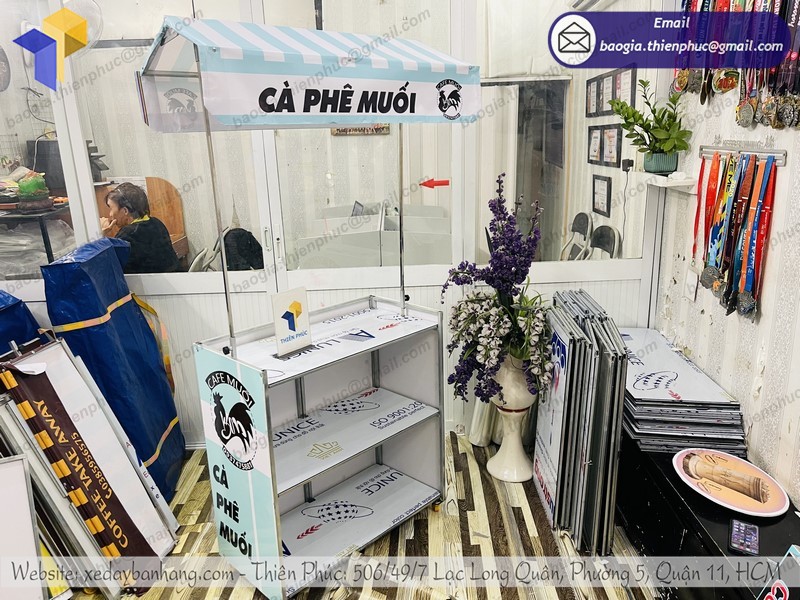 THIÊN PHÚC – Là một đơn vị có kinh nghiệm lâu năm trong lĩnh vực làm các loại xe đẩy bán hàng, quầy bán hàng lưu động, booth bán hàng và các sản phẩm quảng cáo ngoài trời, vòng quay, thùng phiếu chất lượng cao với giá vô cùng hấp hẫn.