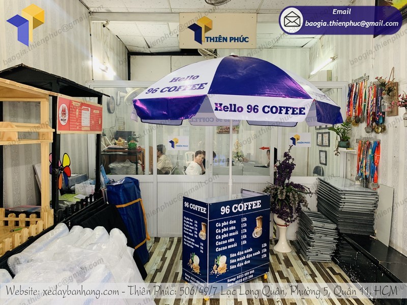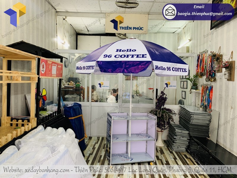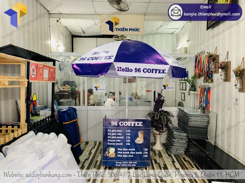 Thiên Phúc là nơi cung cấp các giải pháp thiết kế và thi công quảng cáo. Đồng thời, cũng là thương hiệu xe đẩy bán hàng được nhiều người tin dùng và sử dụng. Ngoài ra, con nhận gia công theo nhu cầu và mong muốn của khách hàng. Chúng tôi luôn đặt tiêu chí “sự hài lòng của quý khách là niềm tự hào của chúng tôi”. Tại Thiên Phúc có vô vàn mẫu mã đa dạng, giá cả phù hợp; chất lượng và uy tín trải dài khắp 64 tỉnh thành với hệ thống vận chuyển xuyên suốt 3 miền với thời gian nhanh nhất.