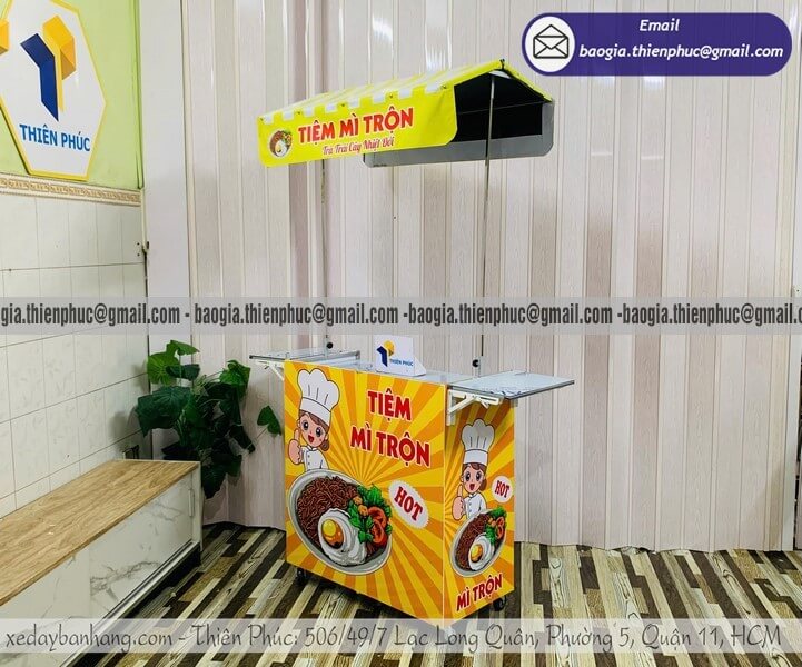 Xe bán mì trộn di động là mô hình quầy bán hàng nhỏ gọn, được thiết kế tối ưu cho việc bán thức ăn nhanh ngoài trời như mì trộn, mì cay, đồ ăn vặt… Sản phẩm thường có bánh xe di chuyển hoặc thiết kế lắp ráp, giúp bạn dễ dàng thay đổi vị trí bán theo từng khung giờ.