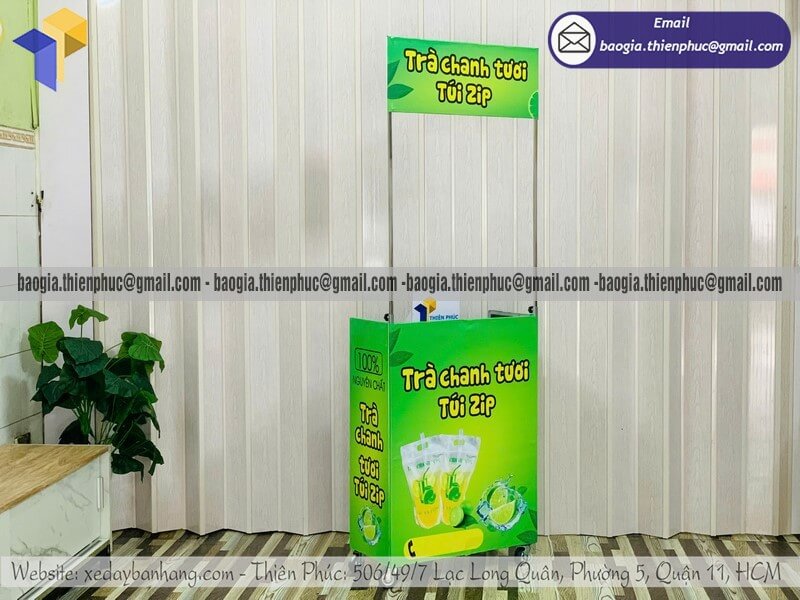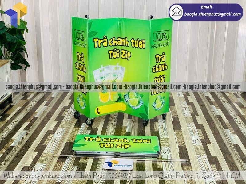 Với mức giá chỉ từ 800K, thiết kế đẹp, gấp gọn, dễ di chuyển và phù hợp nhiều loại hình đồ uống, xe bán nước giúp người kinh doanh nhanh chóng bắt đầu mà không cần vốn lớn. Đây chính là lựa chọn lý tưởng cho các mô hình bán trà tắc, trà chanh, nước mía, nước ép, trà sữa, cà phê mang đi hay nước giải khát vỉa hè.