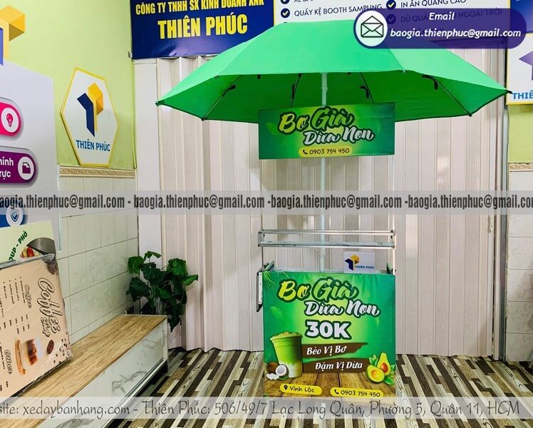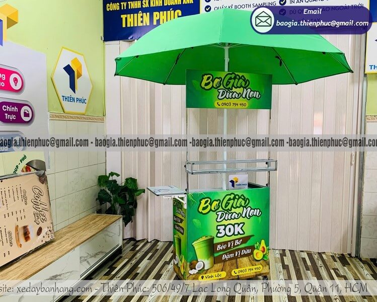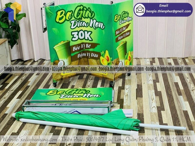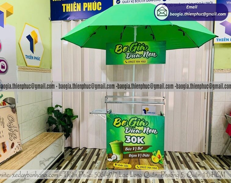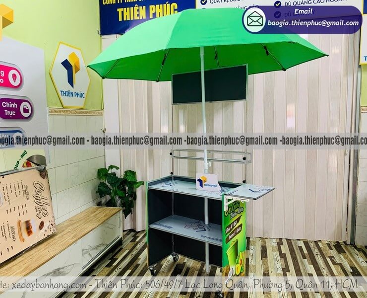 Thích hợp: cho các bạn trẻ kinh doanh ít vốn mở bán trà sữa, cà phê lưu động, hoặc các đại lý muốn mở rộng kênh bán hàng lưu động xe bán cafe gắn dù