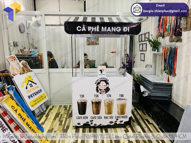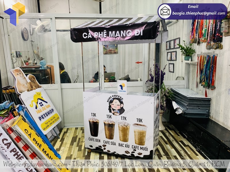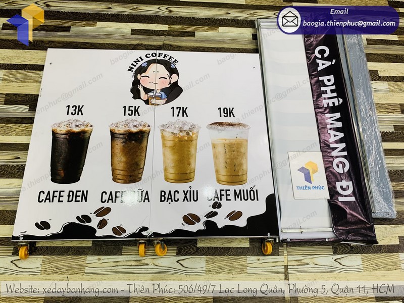 Mua xe đẩy bán cà phê nguyên chất giá rẻ tại Thiên Phúc để được hỗ trợ thiết kế Decal độc quyền miễn phí. Chính sách bảo hành trọn đời chuyên nghiệp. Trợ giá hỗ trợ vận chuyển miễn phí tận nơi trên toàn quốc. Liên hệ ngay số điện thoại: 0903.897.980