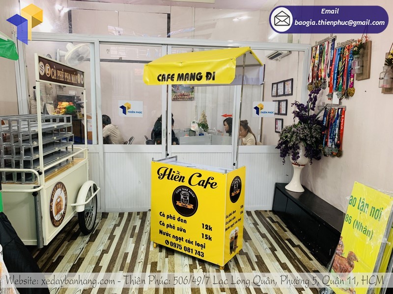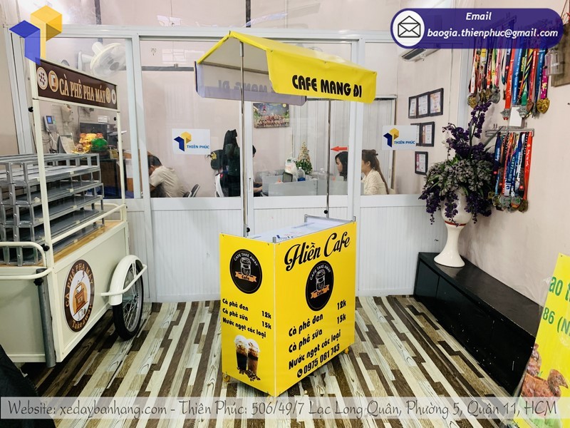 Thiên Phúc là đơn vị có kinh nghiệm trên 10 năm trong ngành sản xuất xe đẩy bán hàng lưu động. Chúng tôi chuyên sản xuất và phân phối các loại xe lắp ráp bán cà phê, tủ bán phở, xe đẩy bán xôi, gian hàng bán đồ ăn vặt,…