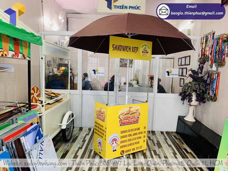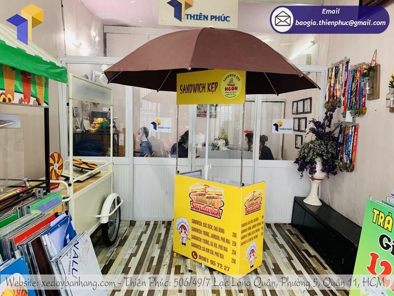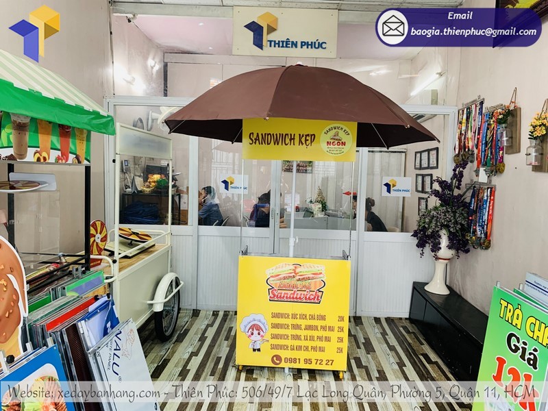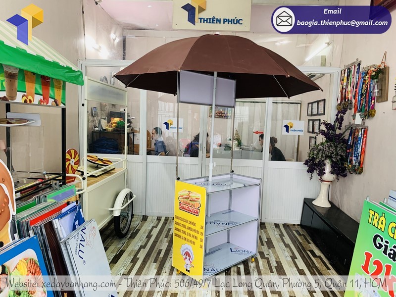Thiên Phúc là nơi cung cấp các giải pháp thiết kế và thi công xe đẩy bán hàng. Đồng thời, cũng là thương hiệu xe đẩy bán hàng được nhiều người tin dùng và sử dụng. Ngoài ra, con nhận gia công theo nhu cầu và mong muốn của khách hàng. Chúng tôi luôn đặt tiêu chí “sự hài lòng của quý khách là niềm tự hào của chúng tôi”. Tại Thiên Phúc có vô vàn mẫu mã đa dạng, giá cả phù hợp; chất lượng và uy tín trải dài khắp 64 tỉnh thành với hệ thống vận chuyển xuyên suốt 3 miền với thời gian nhanh nhất.
