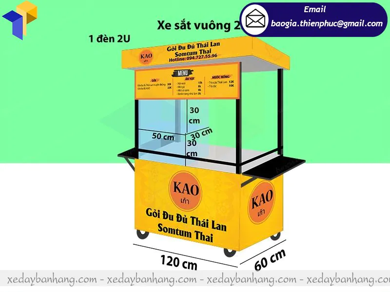 Hiểu được điều này, xưởng sản xuất Thiên Phúc đã không ngừng sáng tạo, thiết kế tỉ mỉ từng chi tiết để cho ra những mẫu xe sắt bán thức ăn nhanh lưu động với thiết kế hiện đại, màu sắc phù hợp với những người thuộc mảng thủy, mảng hỏa. Ngoài ra, ngày nay quầy bán hàng lưu động được trang trí rất tiện lợi, thiết kế đầy đủ các tiện ích để kinh doanh bán hàng lưu động với mẫu mã đa dạng, màu sắc sinh động độc đáo phù hợp với từng món ăn kinh doanh và mức giá lại thấp.