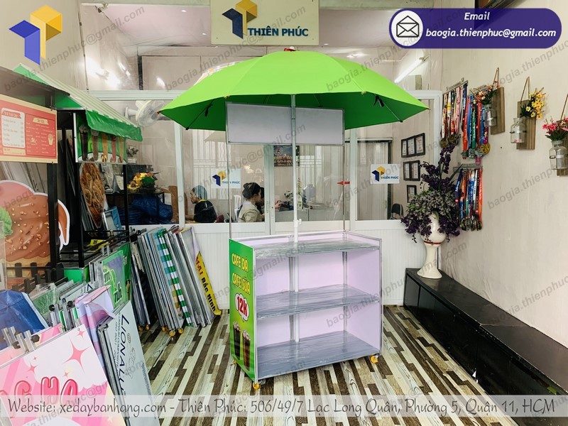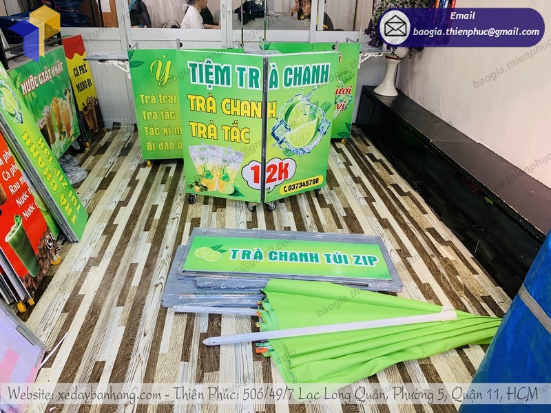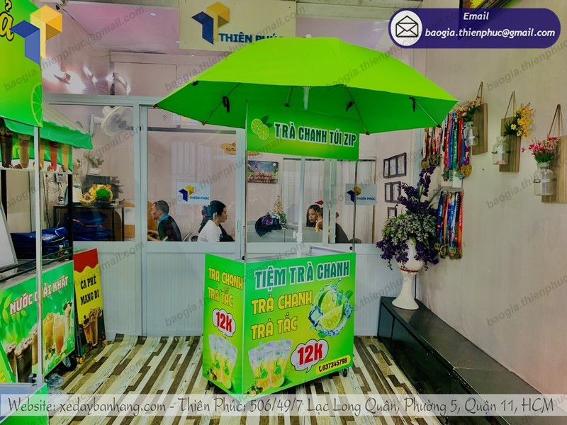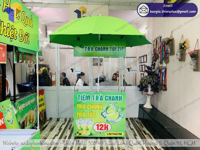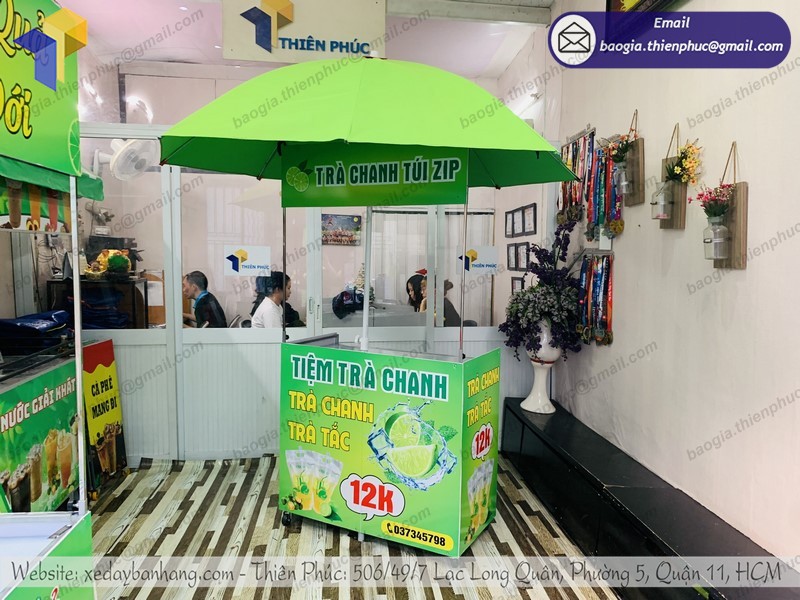 Xe trà chanh lắp ráp có dù che thời tiết tiện lợi giá rẻ