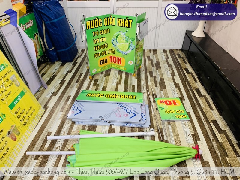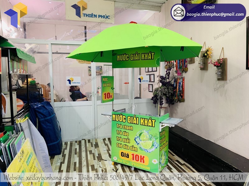 Xe xếp gọn bán nước giải khát Thiên Phúc đồng hành mọi lúc