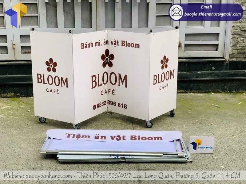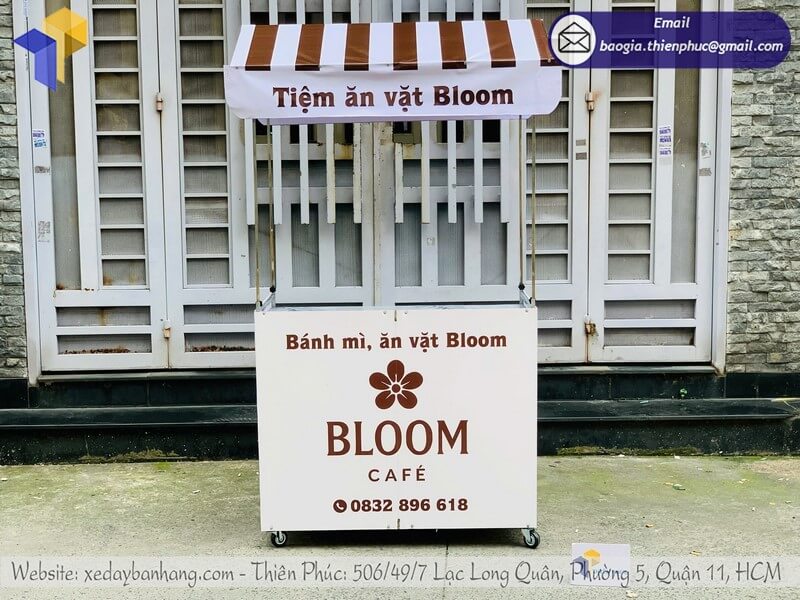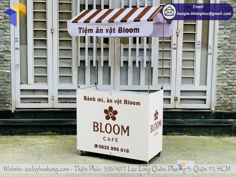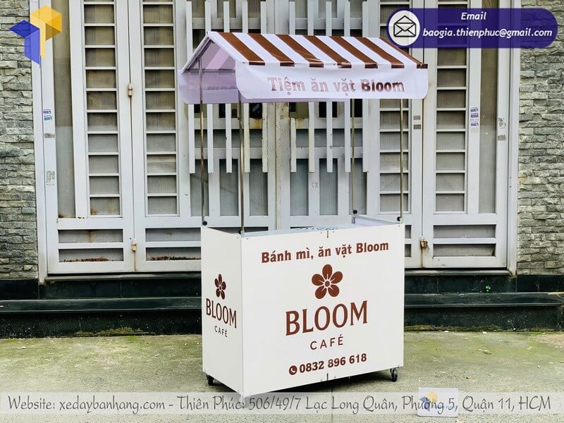 - Thiết kế nhỏ gọn, có mái che, giá kệ tiện lợi cho quán cà phê lưu động, xe cafe vỉa hè.