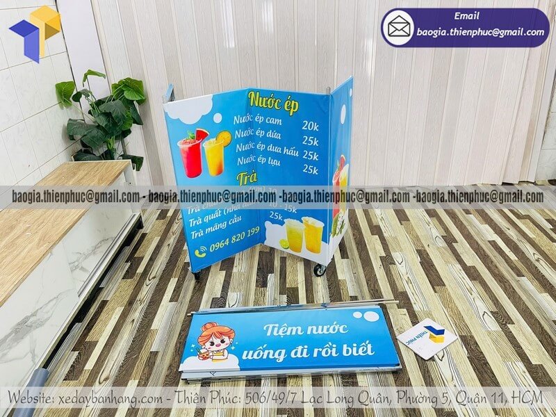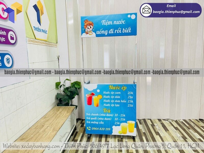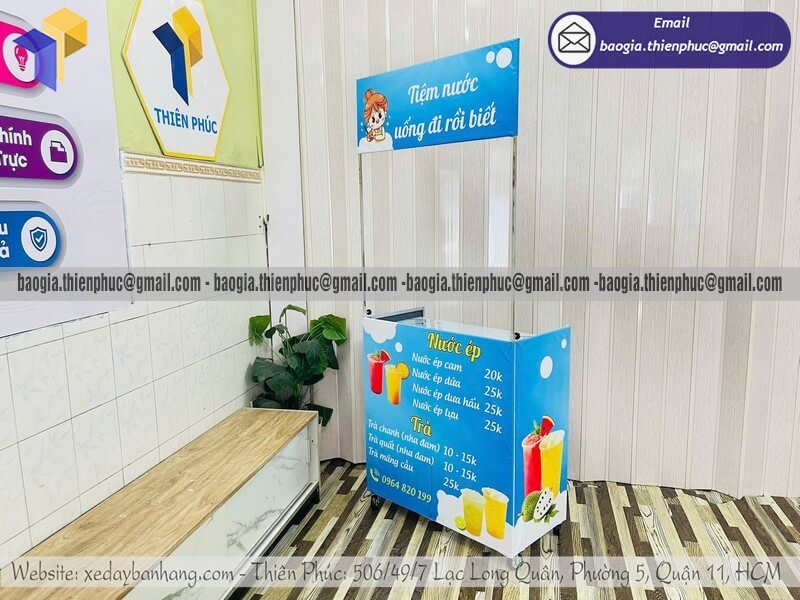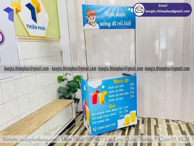 Tên sản phẩm: Xưởng bán quầy nước ép hàng rong xếp gọn hè phố với logo TIỆM NƯỚC UỐNG ĐI LÀ BIẾT