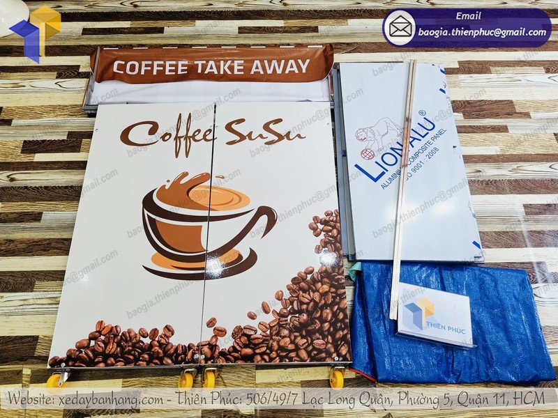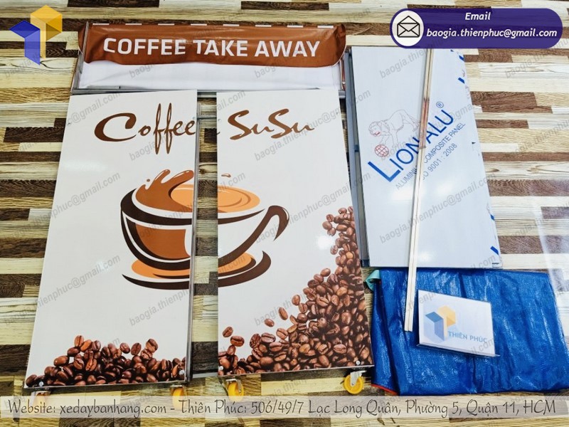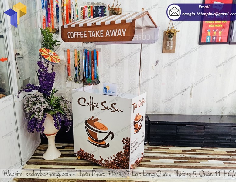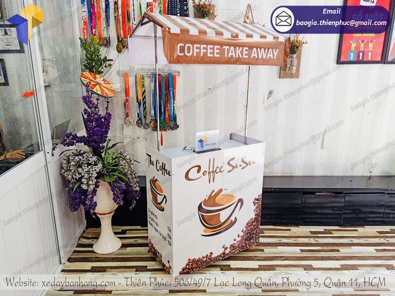 Khách hàng nếu có nhu cầu xe bán cafe gấp gọn lưu động có thể đến ngay với công ty quảng cáo Thiên Phúc của chúng tôi. Chất lượng đảm bảo, thiết kế tiện dụng, giá cả hợp lý, đó là những tiêu chí của một chiếc xe bán hàng lưu động đẹp mà chúng tôi cam kết thực hiện.