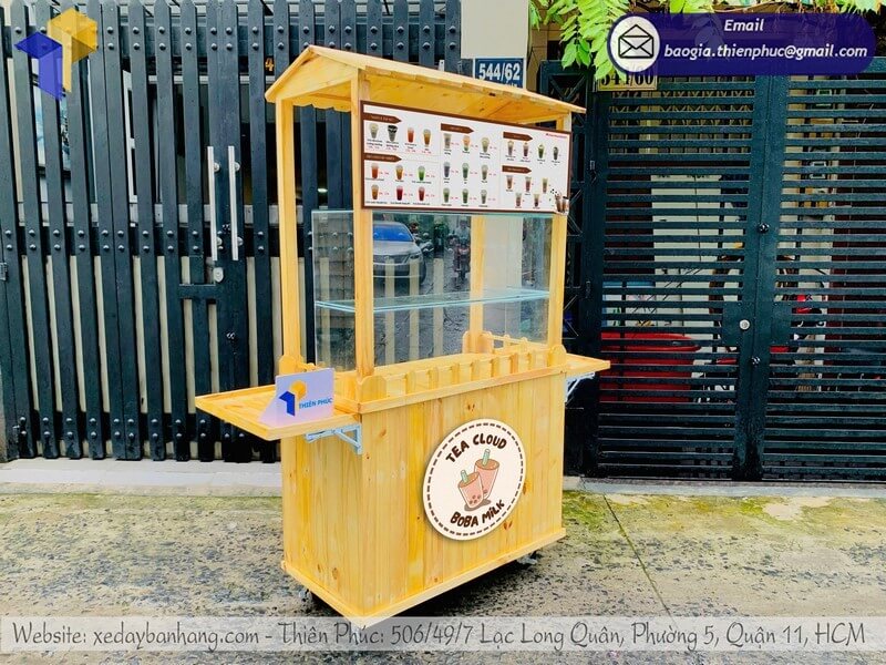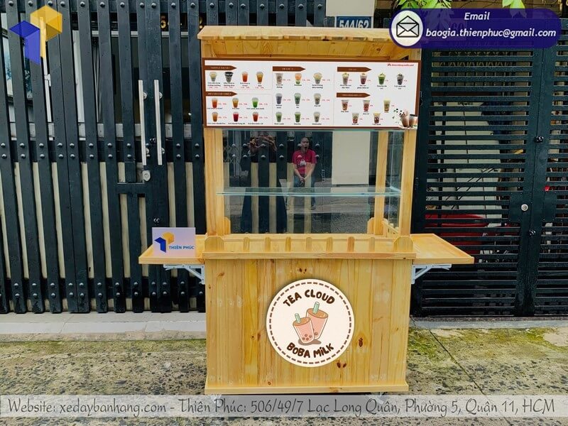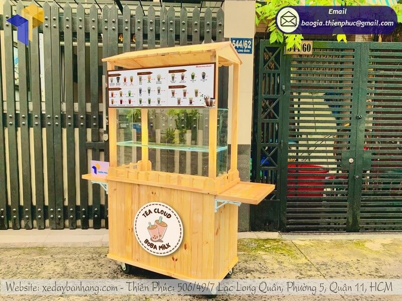 Xưởng gia công quầy gỗ đẩy bán trà sữa di động giá sỉ - Tăng lợi nhuận