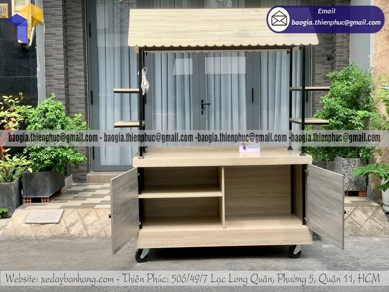 Có bánh xe, dễ di chuyển, phù hợp bán take-away, bán rong, kios nhỏ, popup store.