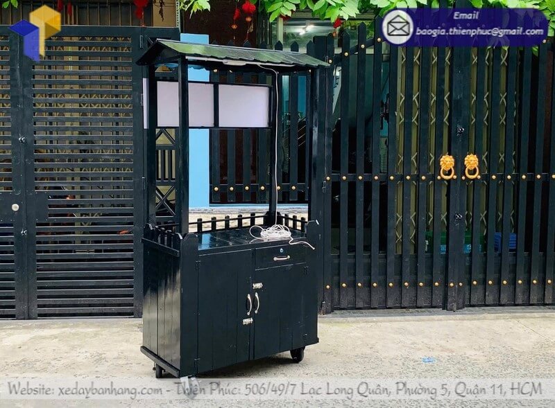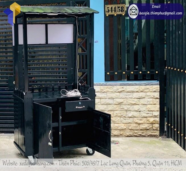 - Kèm ngăn chứa bình, ly, dụng cụ phục vụ, dễ di chuyển trên vỉa hè.