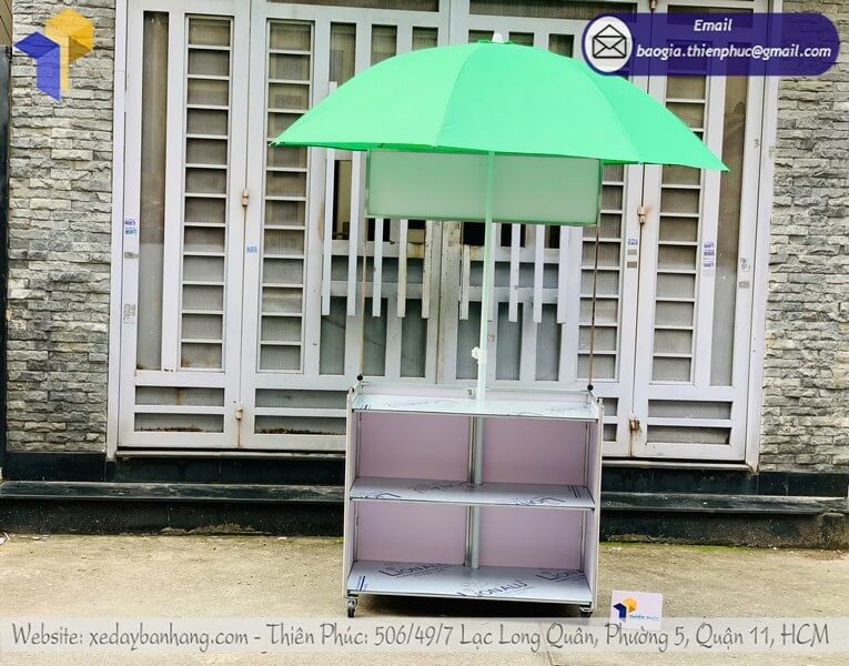- Kết hợp khay trưng bày, giá để chai nước, tích hợp dù che chống nắng mưa.