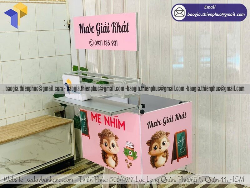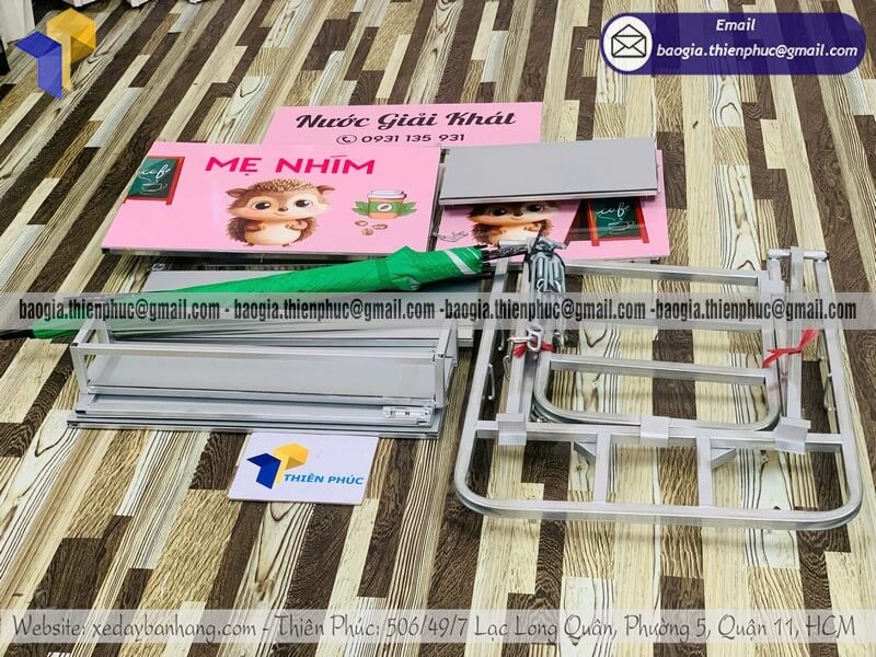 Tên sản phẩm: Xưởng làm thùng bán nước giải khát xếp gọn gắn xe máy với logo MẸ NHÍM