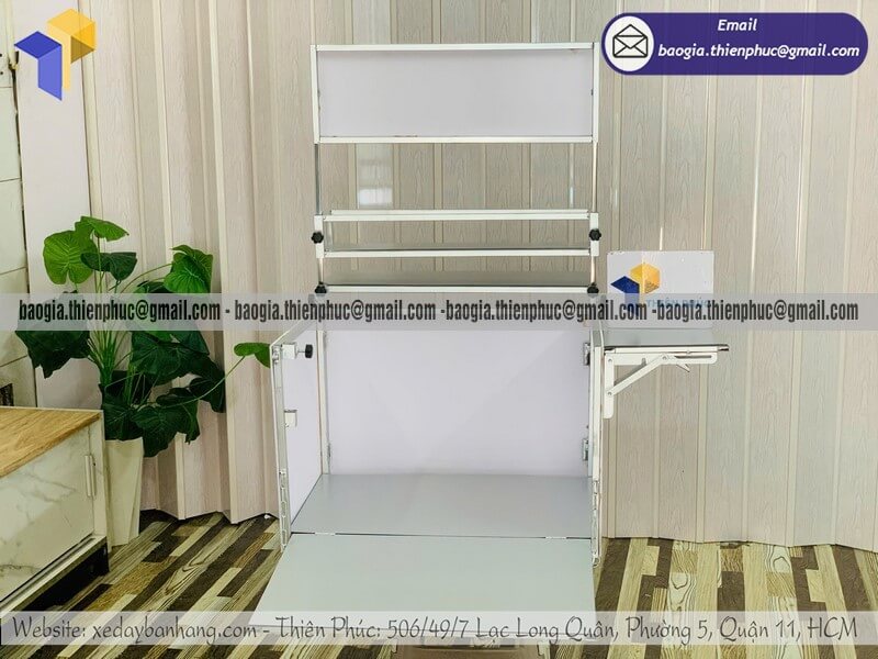 Xưởng làm thùng bán nước giải khát xếp gọn gắn xe máy - Xưởng Thiên Phúc là Công Ty & Xưởng sản xuất chuyên nhận sản xuất và gia công - cung cấp nhiều mẫu thùng bán nước giải khát lưu động lắp xe máy. Với giá rẻ tận gốc - Giá cạnh tranh nhất thị trường dao động rẻ nhất chỉ từ 900.000đ/thùng cho size nhỏ và 1.000.000đ/thùng cho size lớn hơn đối với mẫu cơ bản ( chưa bao gồm dù che: 150.000đ/cây, kệ ly: 150.000đ/cái và bệ xếp: 150.000đ/cái ). Đặt đơn hàng số lượng lớn từ 10 thùng trở lên sẽ được chiết khấu giảm giá với giá cực ưu đãi. Hỗ trợ xuất hóa đơn đỏ VAT cho Doanh Nghiệp hoặc Công Ty. Liên hệ Thiên Phúc xưởng sản xuất để được tư vấn chi tiết kích thước và thiết kế mẫu mã, báo giá nhanh chóng trong 5 phút. Giao hàng trên toàn quốc.