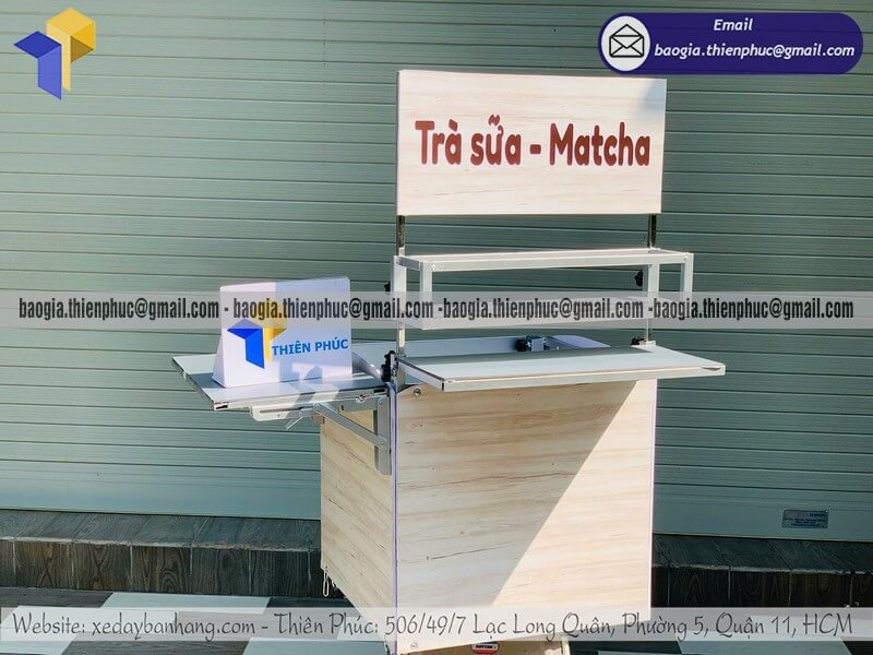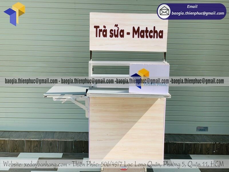 Tên sản phẩm: Xưởng làm thùng trà sữa lưu động gắn xe máy chính hãng giả gỗ với nhãn hiệu TRÀ SỮA - MATCHA