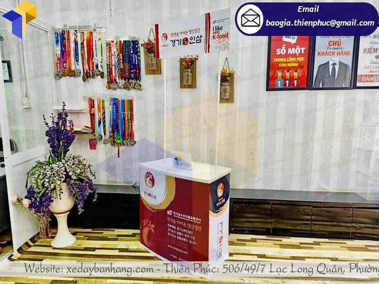 Nếu bạn ngại đến với chúng tôi vì dịch thì hãy “stay at home” gửi mẫu booth nhựa trưng bày ở hội chợ cho chúng tôi qua số hotline zalo 0903897980 để được chúng tôi tận tình tư vấn báo giá và gửi chiếc booth đến tận tay bạn. Liên hệ ngay để đặt mua nhé, các tình yêu của Thiên Phúc