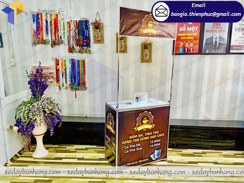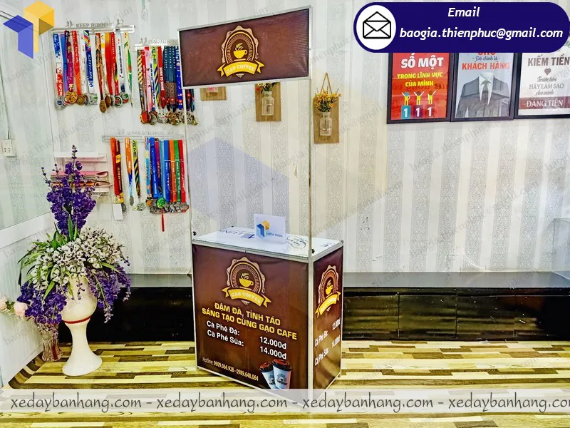 Theo trào lưu quảng cáo, ra mắt sản phẩm mới lưu động của đa số các công ty thương mại, hiện nay chúng tôi chuyên sản xuất các loại sản phẩm booth sắt bán cafe mang đi theo thiết kế của quý khách hoặc do chúng tôi thiết kế mẫu cho quý khách lựa chọn mẫu mã sản phẩm ưng ý nhất.