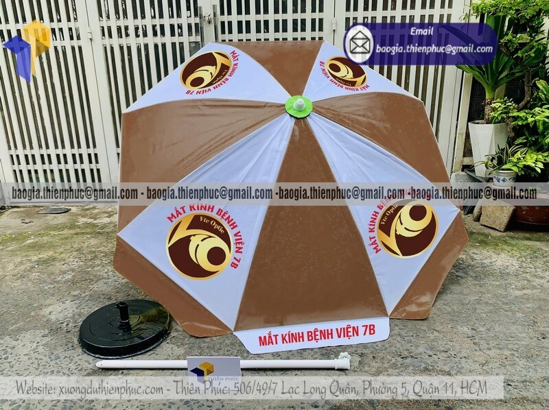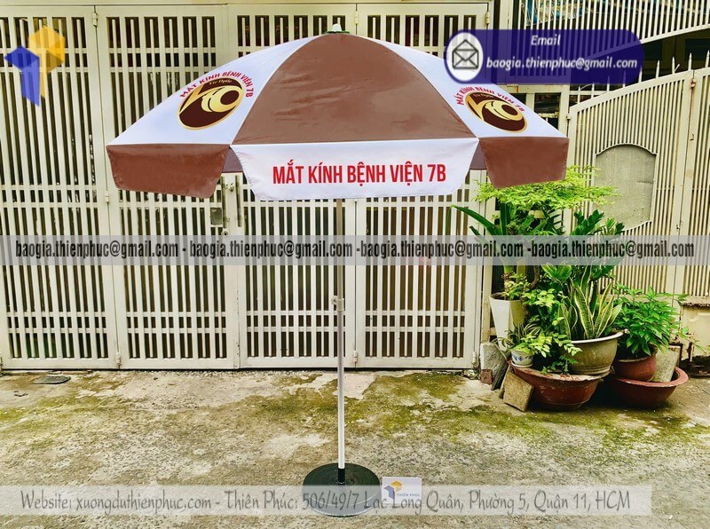 Tên sản phẩm: Xưởng sản xuất dù tròn lớn quảng cáo ngoài trời chịu gió in logo MẮT KÍNH BỆNH VIỆN 7B