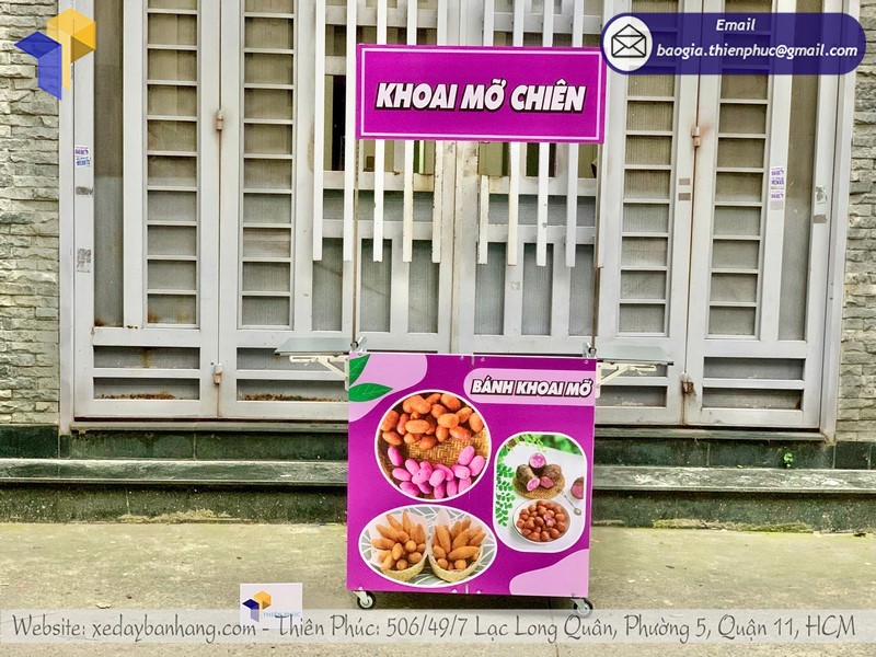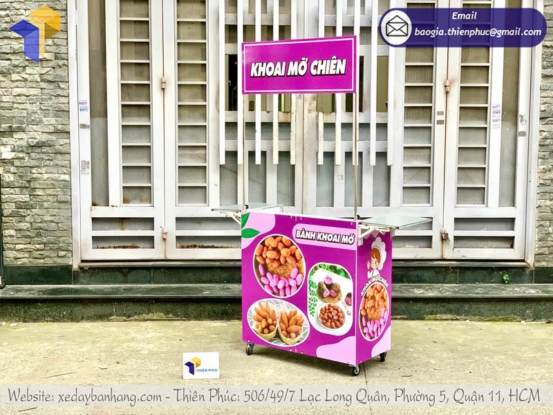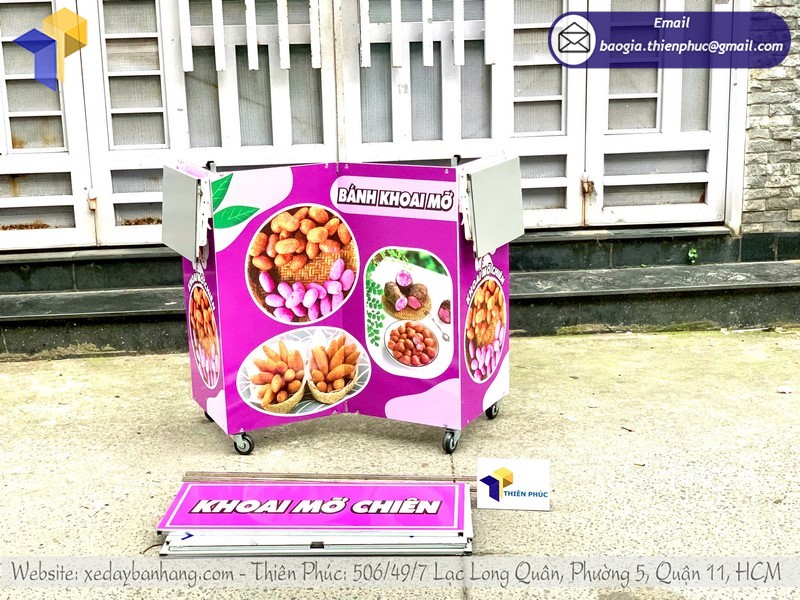 Tên sản phẩm: Gia công kệ bán đồ ăn vặt di động gấp gọn trên vỉa hè rẻ có logo Ăn Vặt