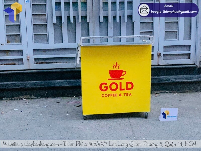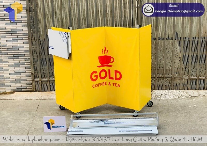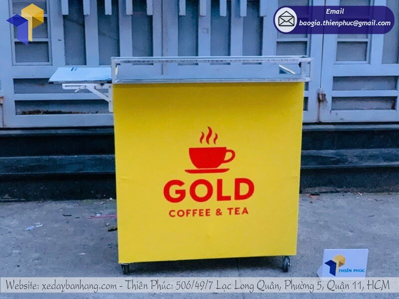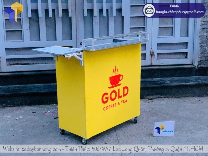 Tên sản phẩm: Xưởng sản xuất kệ bán cafe dạo xếp gọn ngoài trời với nhãn hiệu GOLD COFFEE&TEA