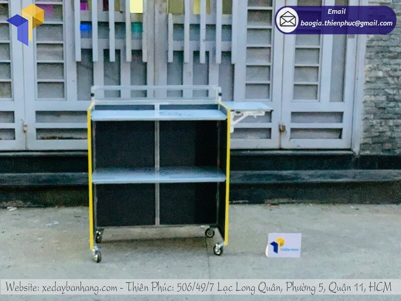 - Kệ bán nước giải khát lưu động, dễ xếp gọn, có ngăn chứa đồ uống, bánh ngọt, nước suối, trà sữa