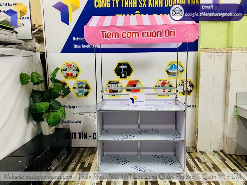 Xưởng sản xuất kệ bán cơm cuộn gấp gọn lưu động giá rẻ - Thiên Phúc chuyên cung cấp nhiều mẫu kệ bán hàng gấp gọn lưu động với nhiều mẫu mã kích thước khác nhau theo yêu cầu, thiết kế logo hoàn toàn miễn phí, xưởng nhận đặt hàng số lượng lớn, giao hàng toàn quốc, dao động giá chỉ từ 700.000đ/kệ trở lên. Liên hệ ngay với chúng tối để được báo giá chi tiết.