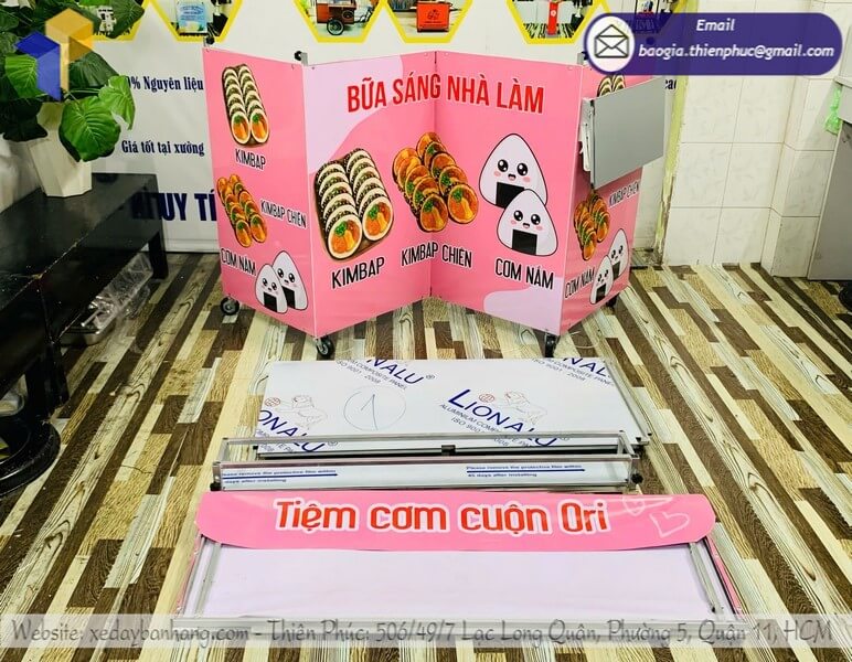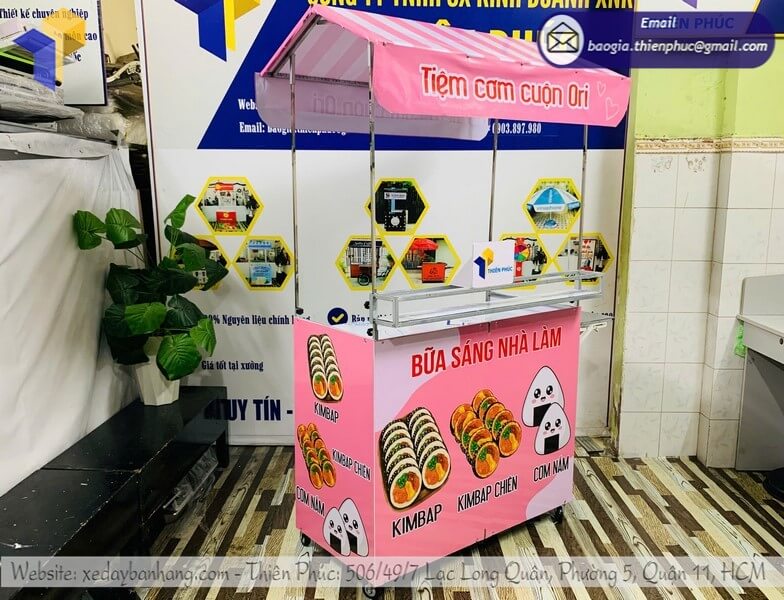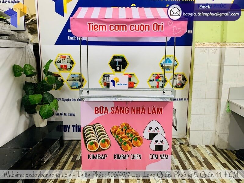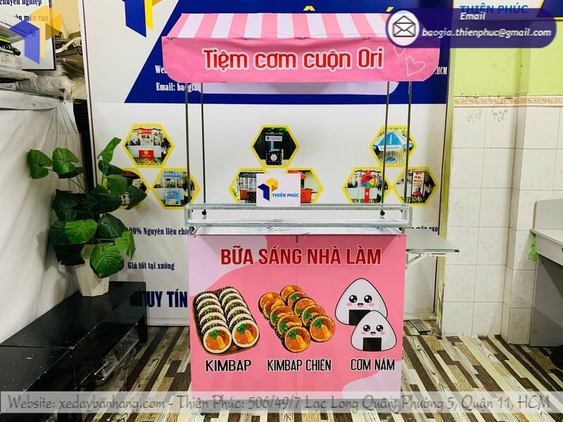 Dù không có hình ảnh trực tiếp trên bài viết, xưởng Thiên Phúc hiện cung cấp nhiều mẫu kệ bán cơm cuộn gấp gọn lưu động, bao gồm: