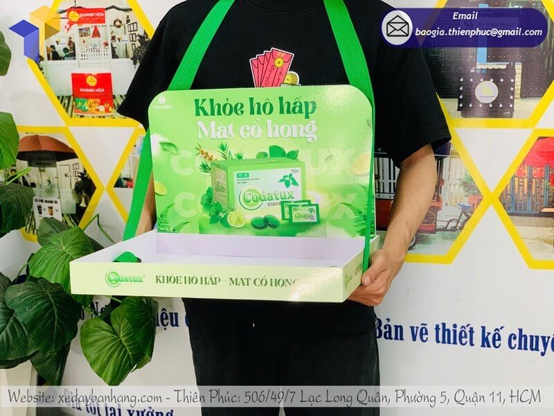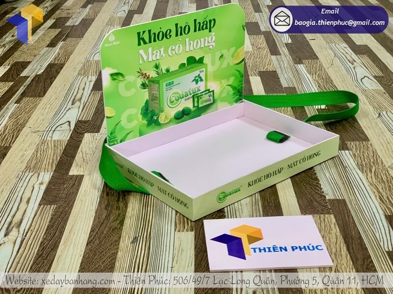 Tên sản phẩm: Xưởng sản xuất khay sampling đeo vai phát sample cho nhãn hàng thương hiệu KẸO NGẬM CODATUX