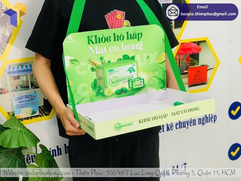 Trong thời đại marketing hiện đại, PR di động trở thành giải pháp tiếp cận khách hàng nhanh chóng và hiệu quả. Một trong những công cụ quan trọng hỗ trợ chiến dịch này chính là khay sampling đeo vai phát sample. Tại xưởng sản xuất khay sampling đeo vai phát sample của chúng tôi, mọi nhu cầu từ thiết kế, sản xuất đến bàn giao sản phẩm đều được thực hiện chuyên nghiệp, đáp ứng các tiêu chuẩn cao nhất.