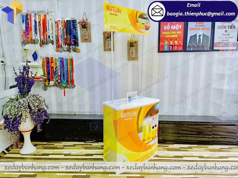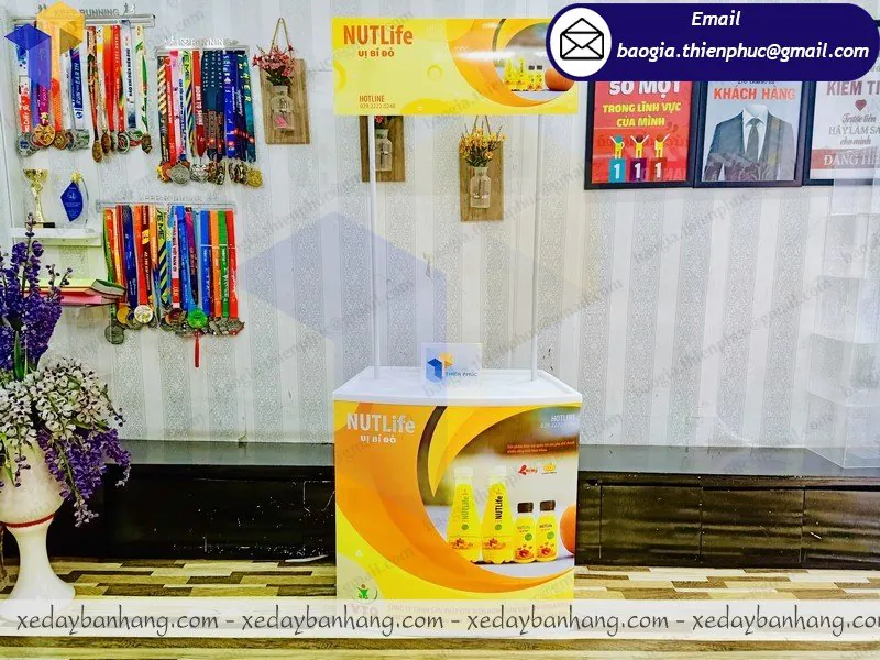 Thiên Phúc - cơ sở chuyên sản xuất các loại quầy bán hàng lưu động bằng nhựa, booth sampling bán hàng di động giá rẻ, mẫu quầy sampling lắp ráp di động, booth bán hàng lắp ráp di động, booth nhựa bán hàng quảng cáo.