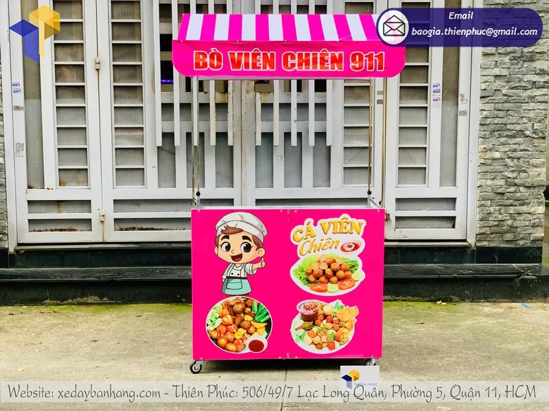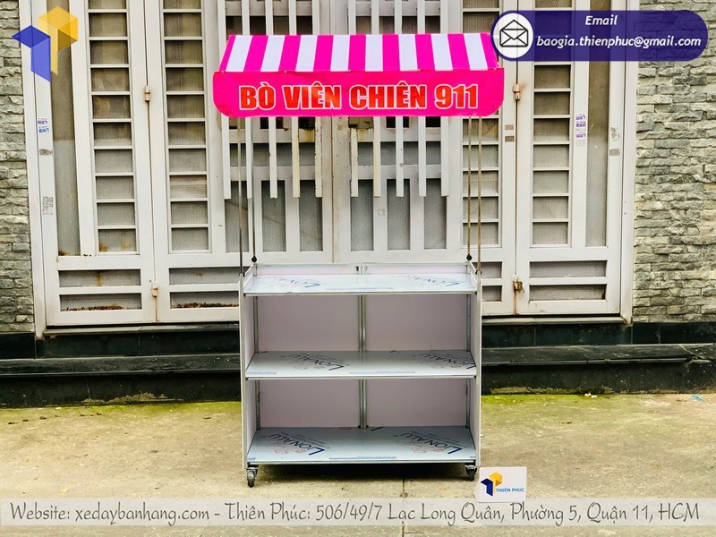 Tên sản phẩm: Thiết kế mẫu quầy bán đồ ăn vặt gấp gọn vỉa hè với logo BÒ VIÊN CHIÊN 911