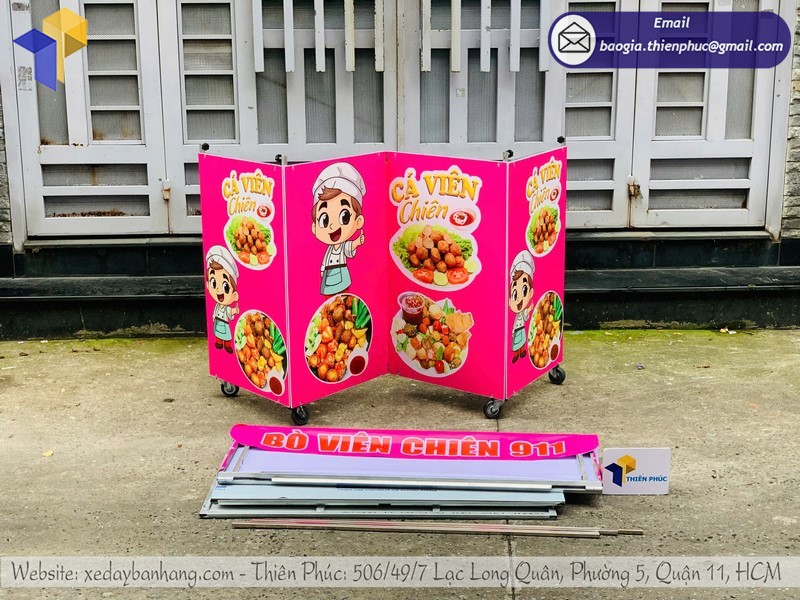 Thiết kế mẫu quầy bán đồ ăn vặt gấp gọn vỉa hè - Thiên Phúc nhận báo giá và đặt hàng nhanh chóng, lên đơn thiết kế mẫu demo nhanh chóng, có ngay trong ngày, miễn phí thiết kế logo